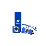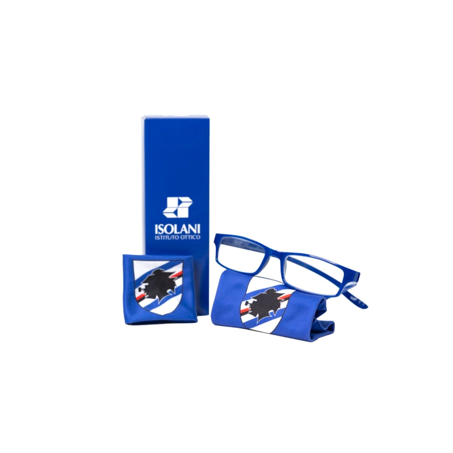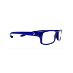 Occhiali Premontati da Lettura blue, con dettaglio dello stemma sull'asta, disponibile con potere da +1.00 a +3.50.