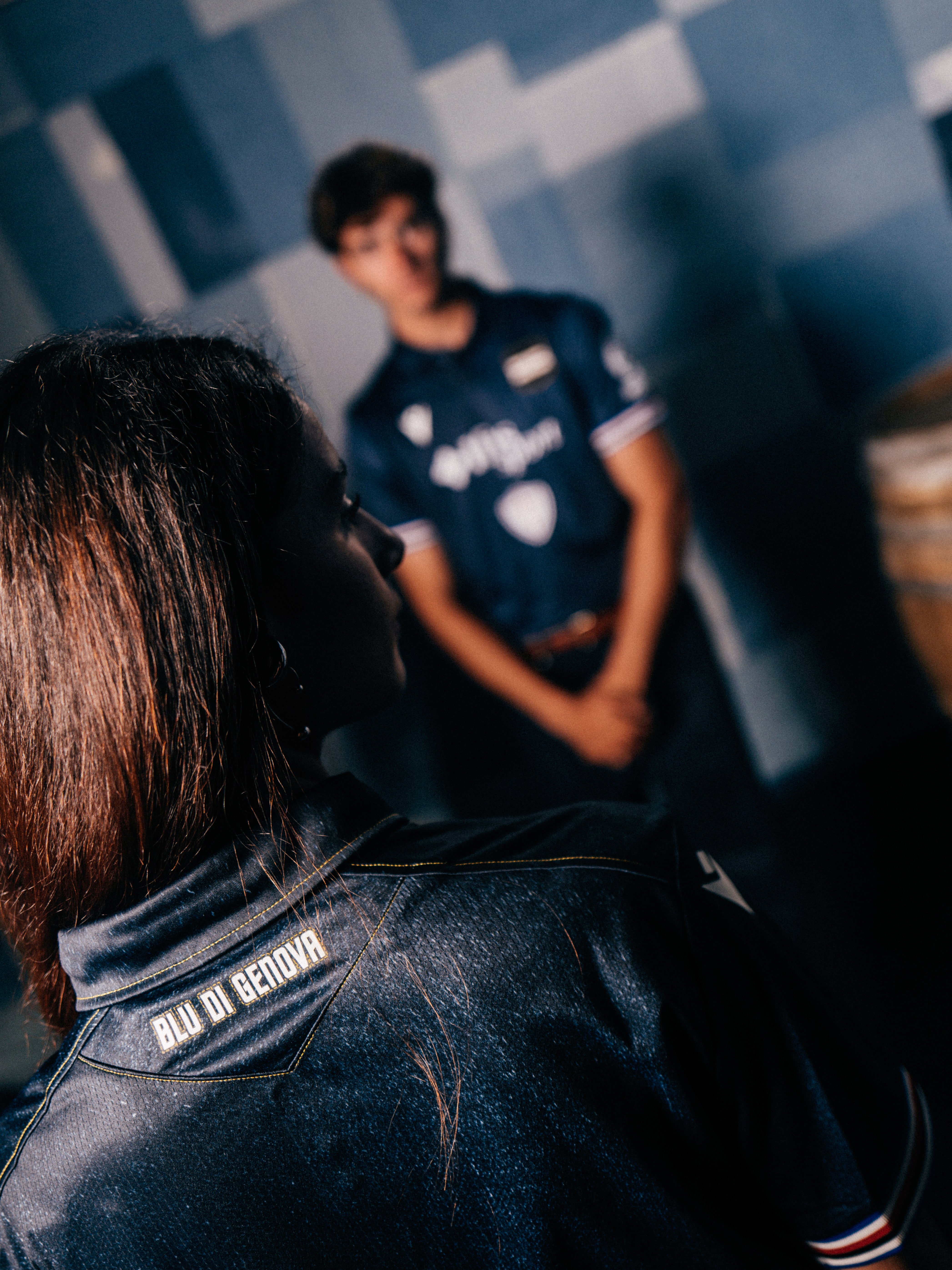 The new 2025/26 Third Shirt of U.C. Sampdoria honours the ancient history of the old port of Genova and that ‘blue fabric’ initially used for sailcloth sacks on ships and later for the practical, hard-wearing work trousers of Genoese sailors. The famous ‘Blu di Genova’ which gave rise to the English term blue jeans (from the French bleu de Gênes) and the classic denim colour. It is this story that inspires the club’s new Third Kit: a fully denim-blue shirt with polo collar, three-button fastening and gold stitching.