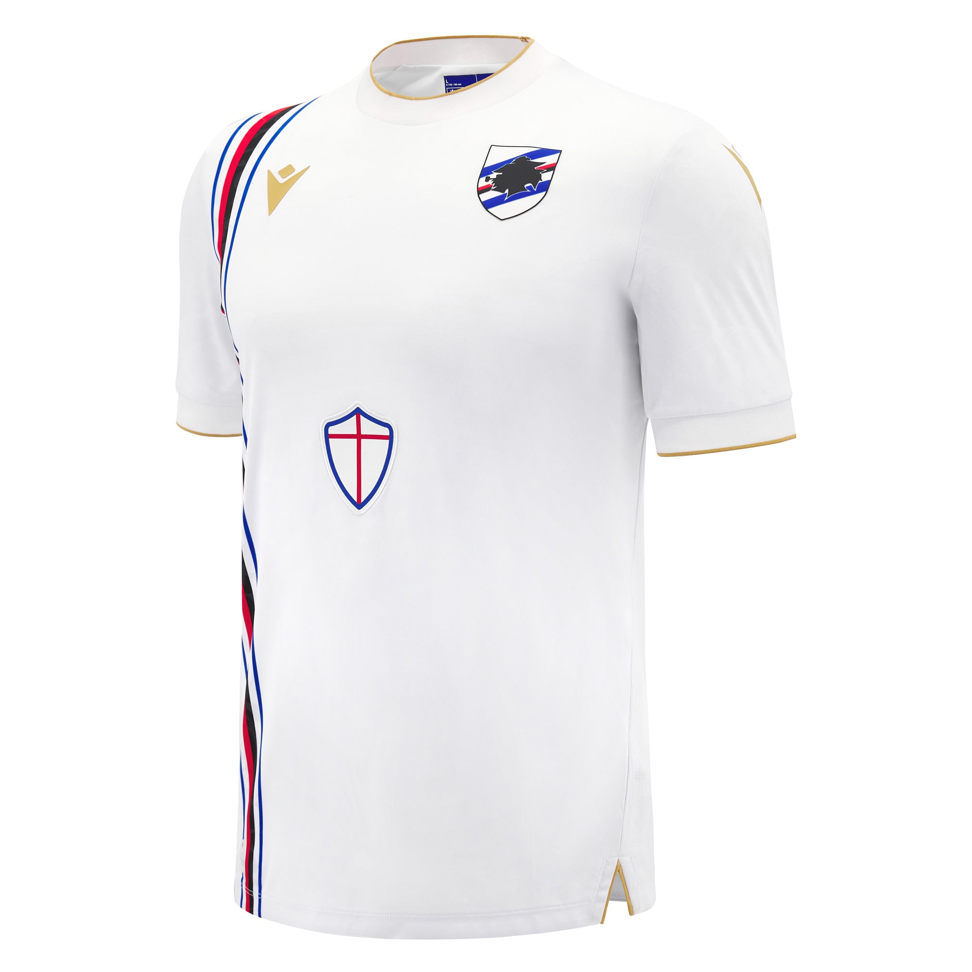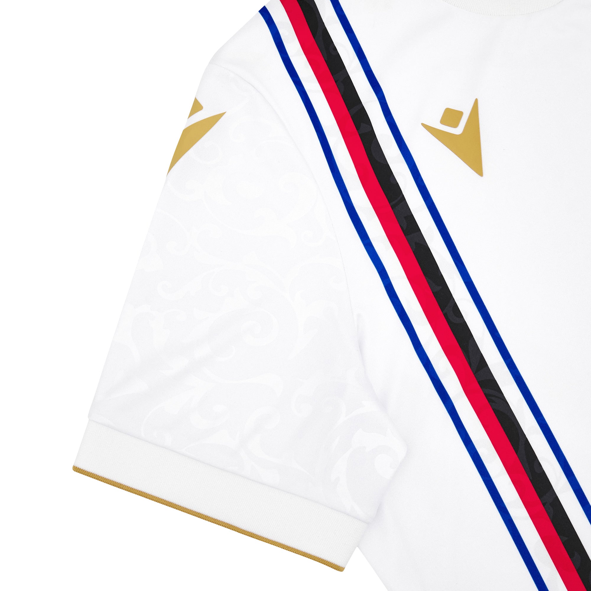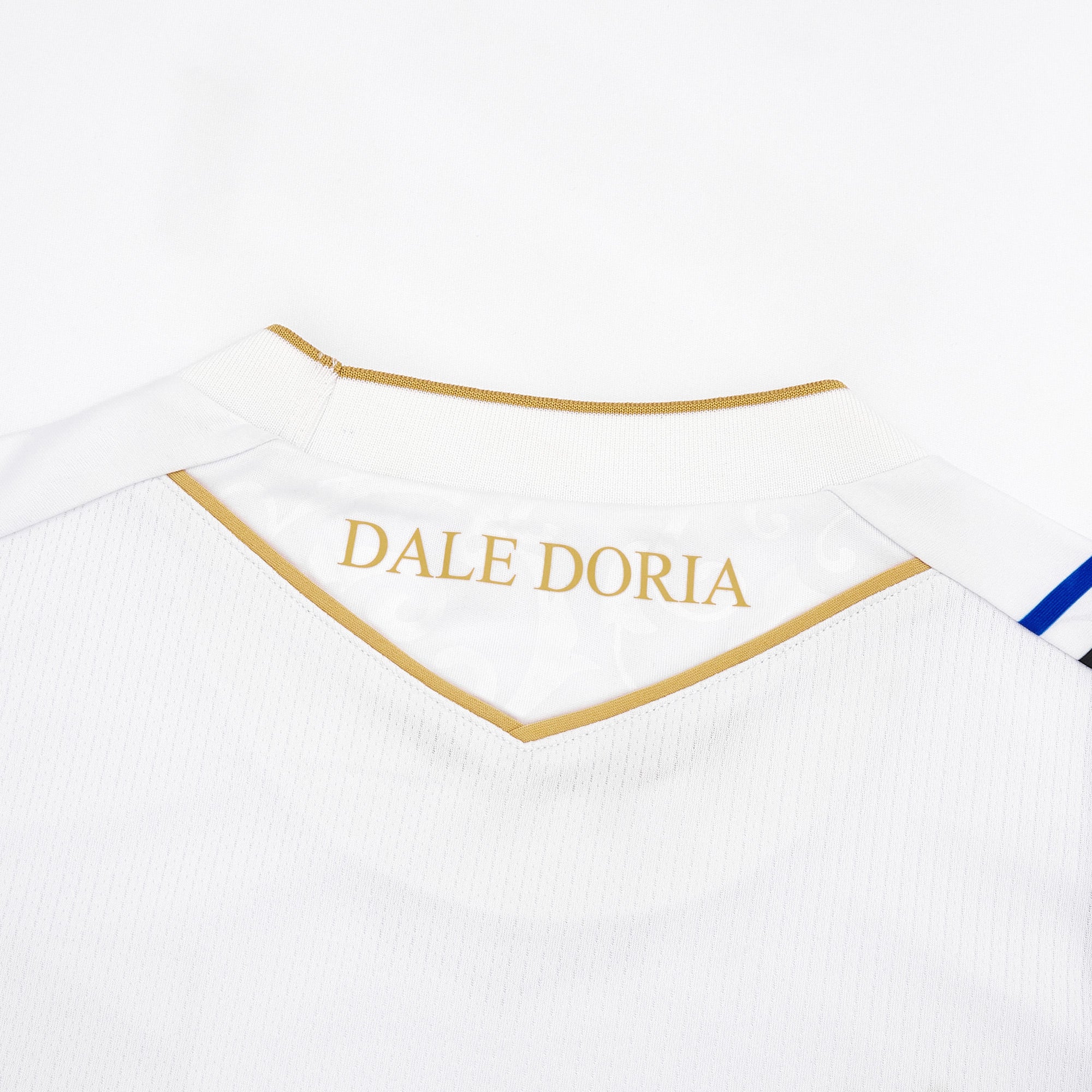 The Sampdoria Away Jersey for the 2024/25 season comes with a white background enriched by an all over embossed pattern inspired by the Renaissance graphics of the Rolli. There are gold inserts, on the back of the neck is the inscription "DALE DORIA". The bluerchiata band crosses the whole right side of the head.